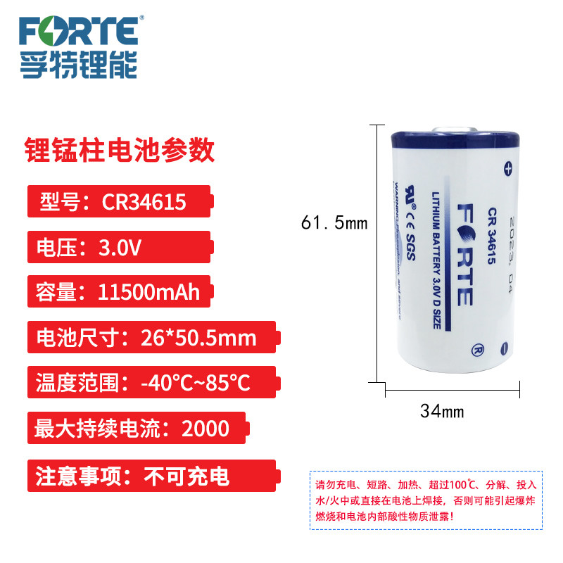 为您提供商品Forte孚特CR34615智能水表燃气表涡街流量计基站设备1号3V锂电池D的详细介绍,