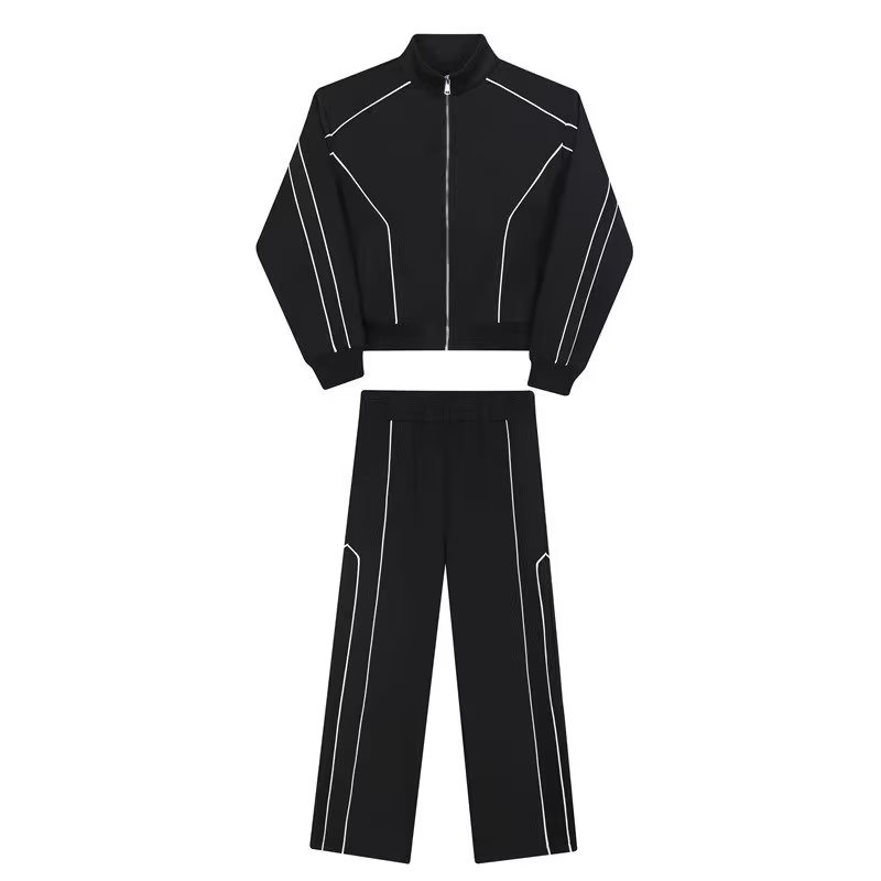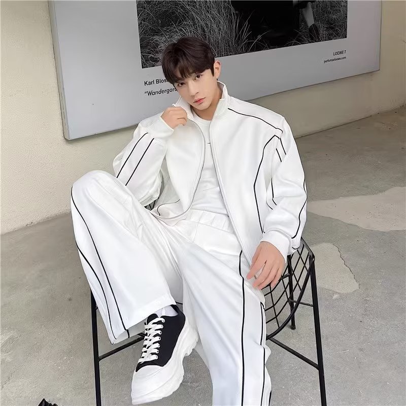 男一身搭配炸街立领夹克阔腿裤 两件套 设计感明线休闲帅气套装 春装
