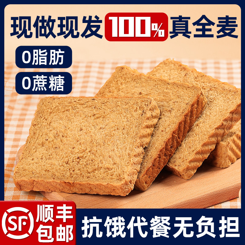 全麦面包早餐面包整箱粗粮控糖无糖精减低0脂肥切片专用食品吐司0由