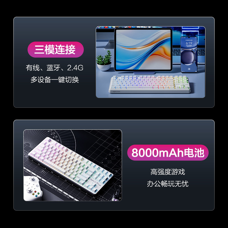 英菲克K87机械键盘无线有线蓝牙三模客制化电竞游戏专用办公侧刻由