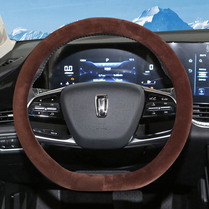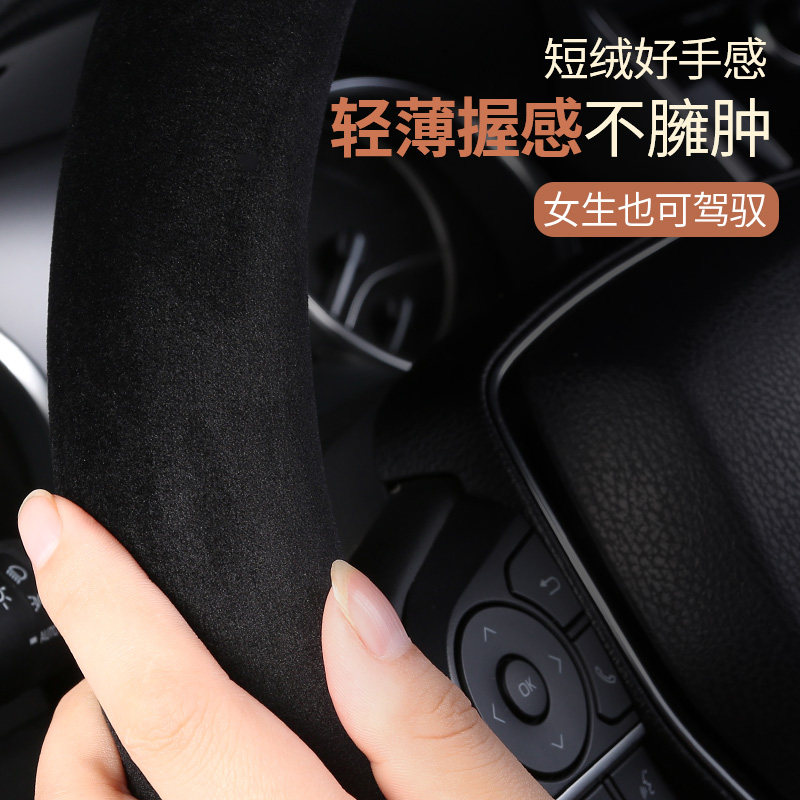 四季 汽车翻毛方向盘套高级感麂皮绒吸汗防滑把套毛绒可爱 通用新款