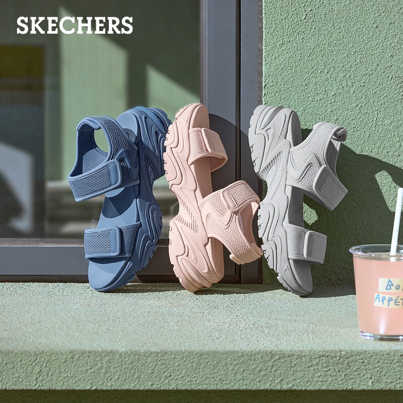 斯凯奇夏季 女舒适百搭外穿厚底休闲运动增高魔术贴时尚 沙滩鞋 凉鞋由