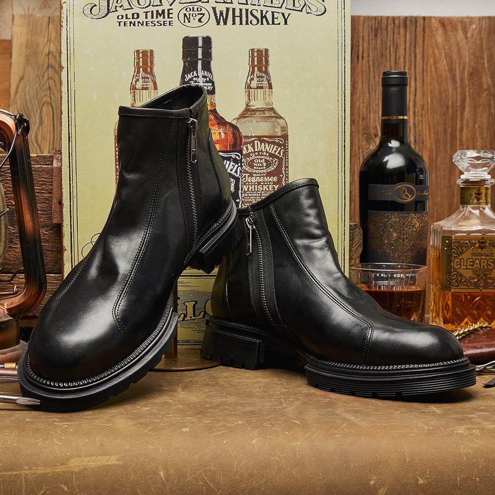 「首发2开」AMBSOM尖头雅痞切尔西靴高帮植鞣牛皮厚底Excella拉链