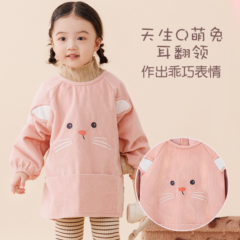 幼儿园吃饭纽扣反穿衣 宝宝纯棉灯芯绒罩衣儿童防水防脏羽绒服罩衫