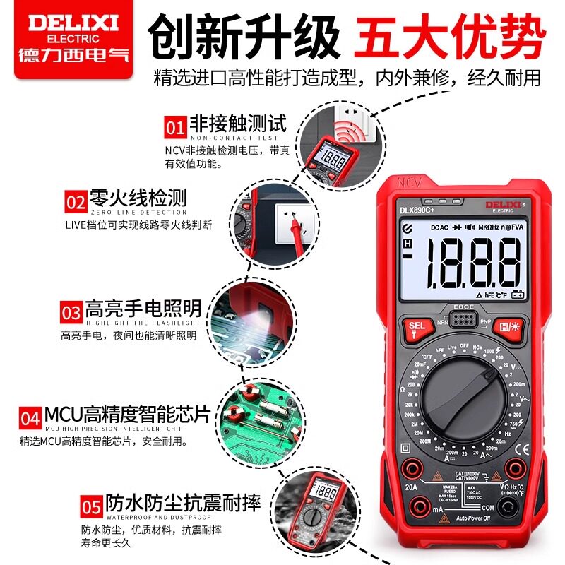 德力西电气万用表电工专用维修数字高精度全自动智能防烧890D由
