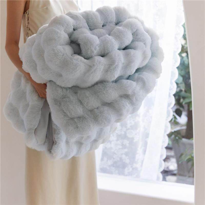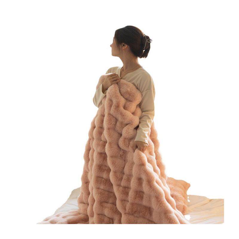 简约提花兔毛绒加厚秋冬羊羔绒毯休闲毛毯学生珊瑚绒披肩沙发盖毯