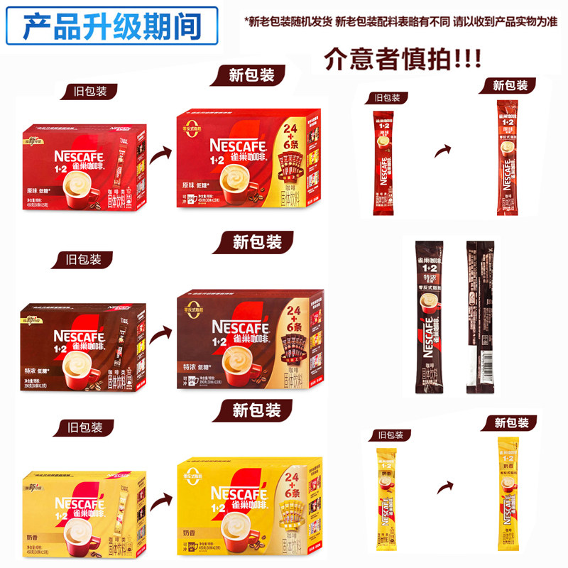 雀巢咖啡经典 2原味奶香特浓三合一速溶咖啡30条装 拿铁低糖24
