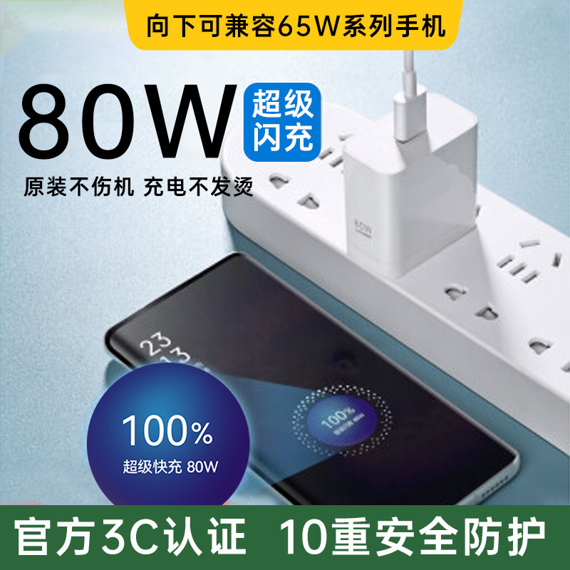 120W超级快充适用荣耀华为OPPO安卓VIVO充电器正品 手机66W插头p50p40p30数据线闪充通用 100W充电头mate50套装