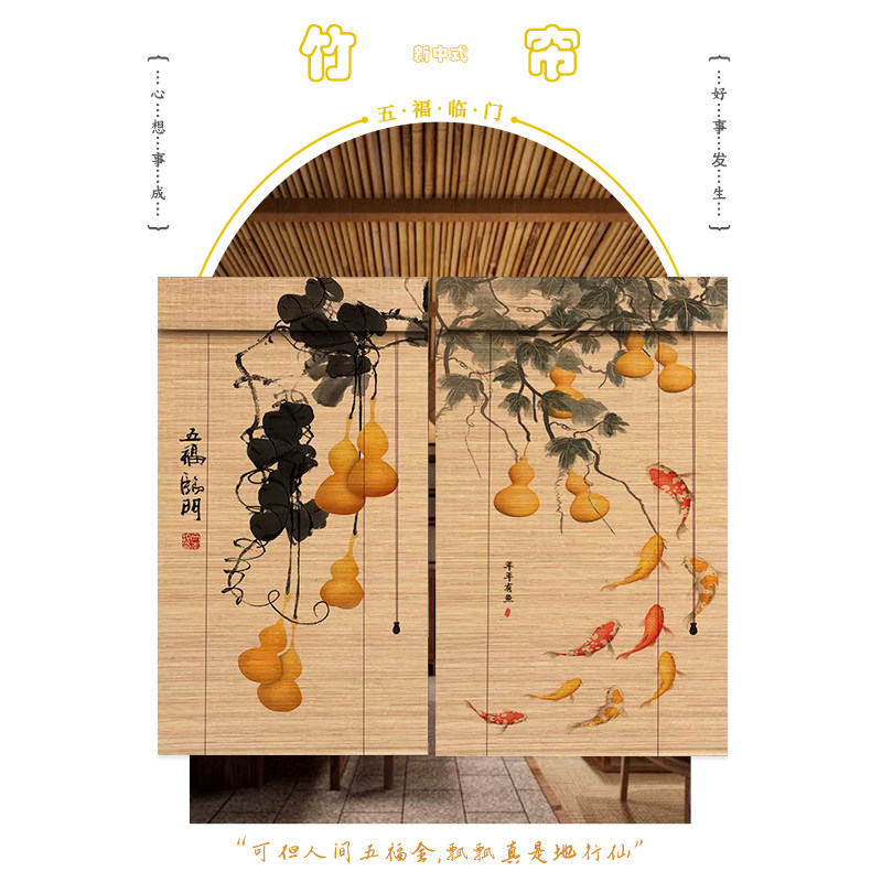 竹窗帘阳台遮光遮阳帘茶室禅意复古挂帘户外手拉卷帘屏风帘 新中式由