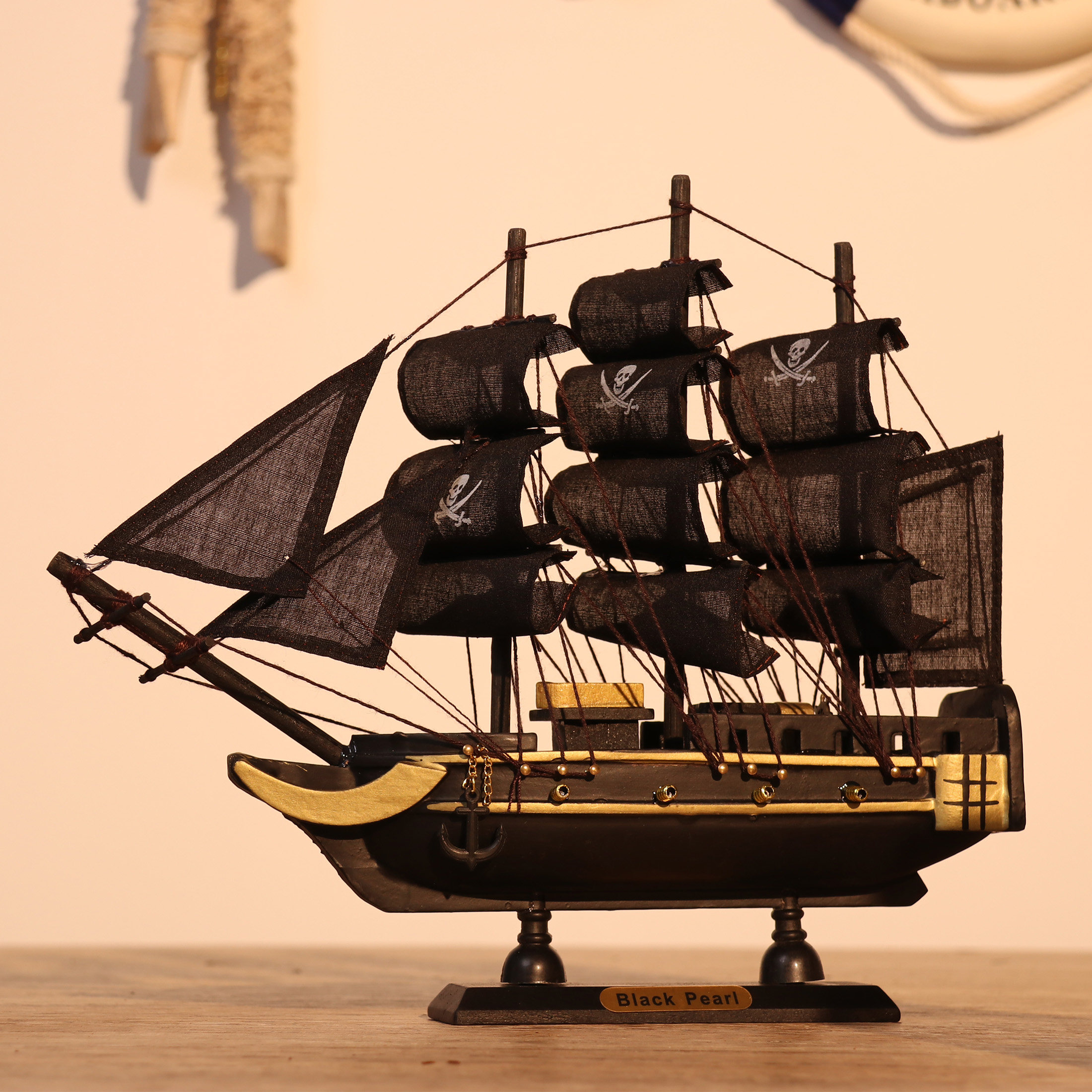 饰摆件送礼品船毕业同学 黑珍珠号加勒比海盗木质小帆船模型家居装由