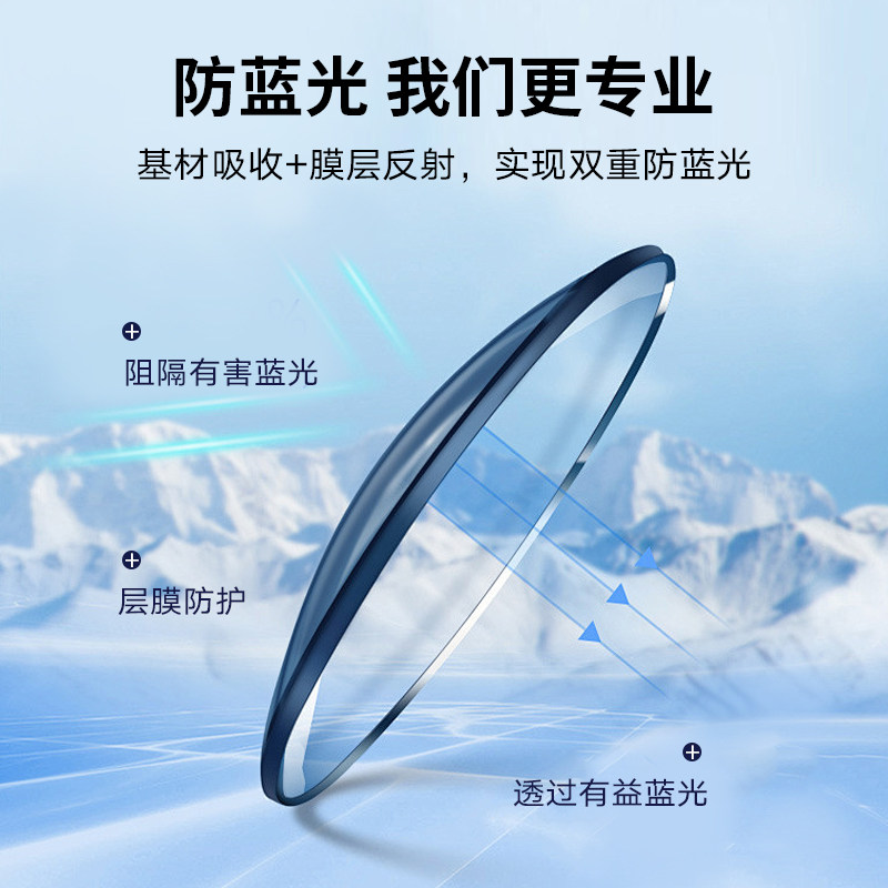 明月镜片防蓝光眼镜浅底色护眼非球面1.71超薄近视眼镜片定制配镜