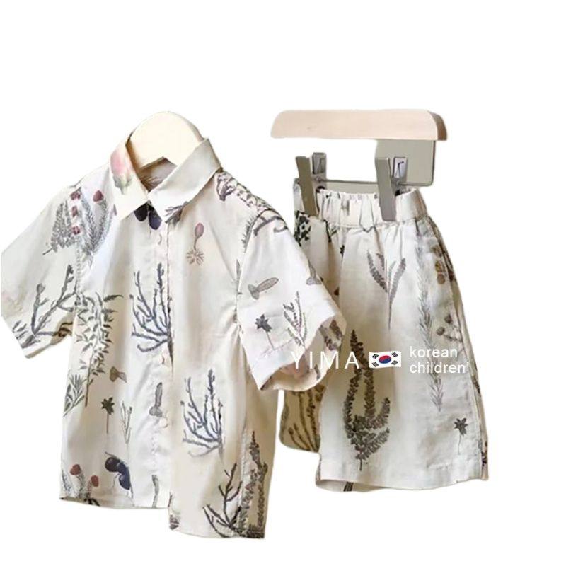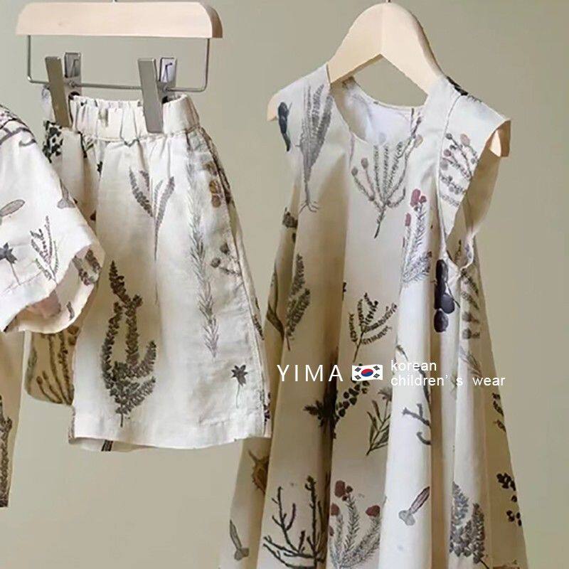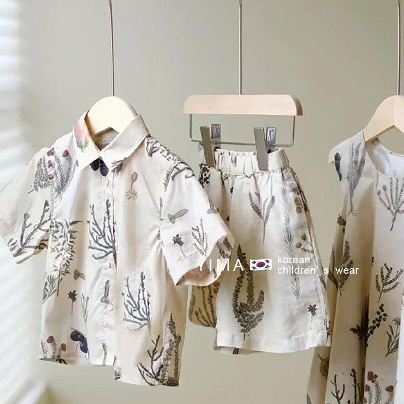 夏季 童装 女童洋气连衣.裙男童短袖 衬.衣儿童上衣港风两件套 姐弟装由