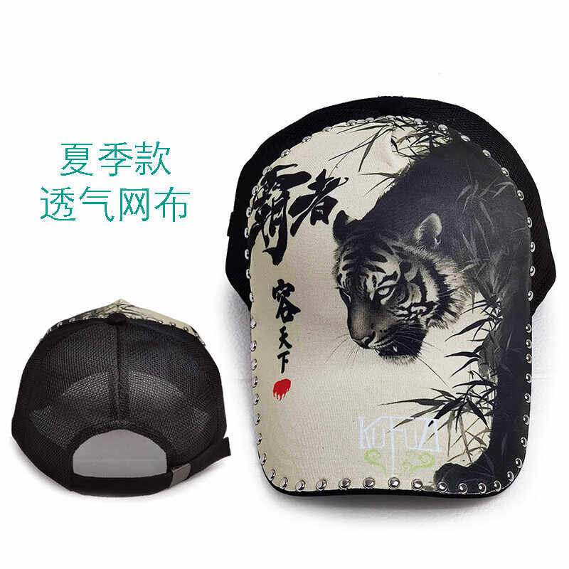 为您提供商品遮阳透气个性 硬顶 国潮风棒球帽水墨虎头印花鸭舌帽四季 帽子春夏季的详细介绍,