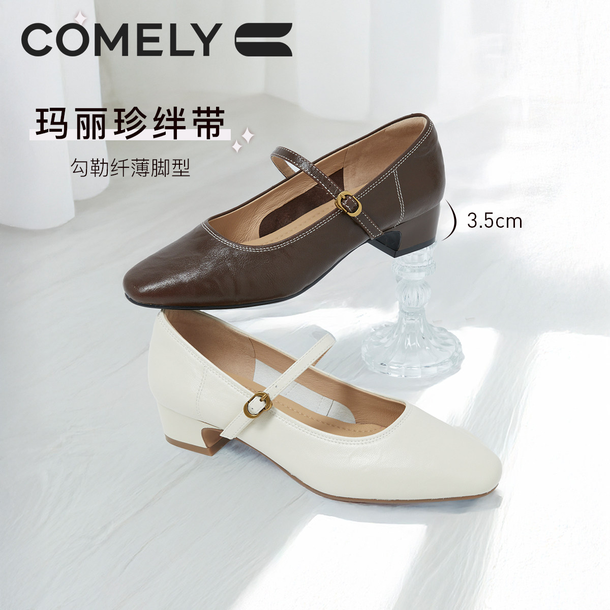 戈美其集合单鞋 粗跟玛丽珍女鞋 配裙子气质浅口单鞋 子 小皮鞋
