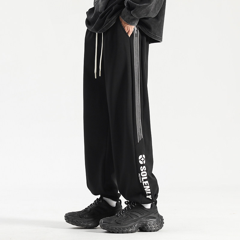 asomesome美式 女灰色修身 休闲松弛运动裤 子 黑色微喇直筒低腰卫裤