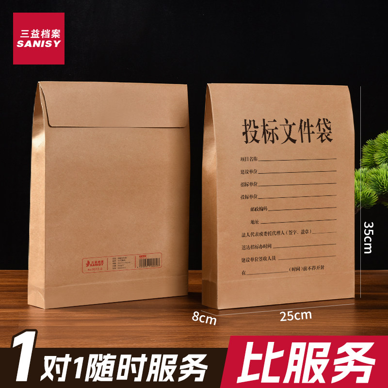 为您提供商品8cm加大加厚国产纸招标文件袋标函牛皮纸送密封条 三益投标文件袋500个标书文件密封袋投标专用档案袋9013的详细介绍,