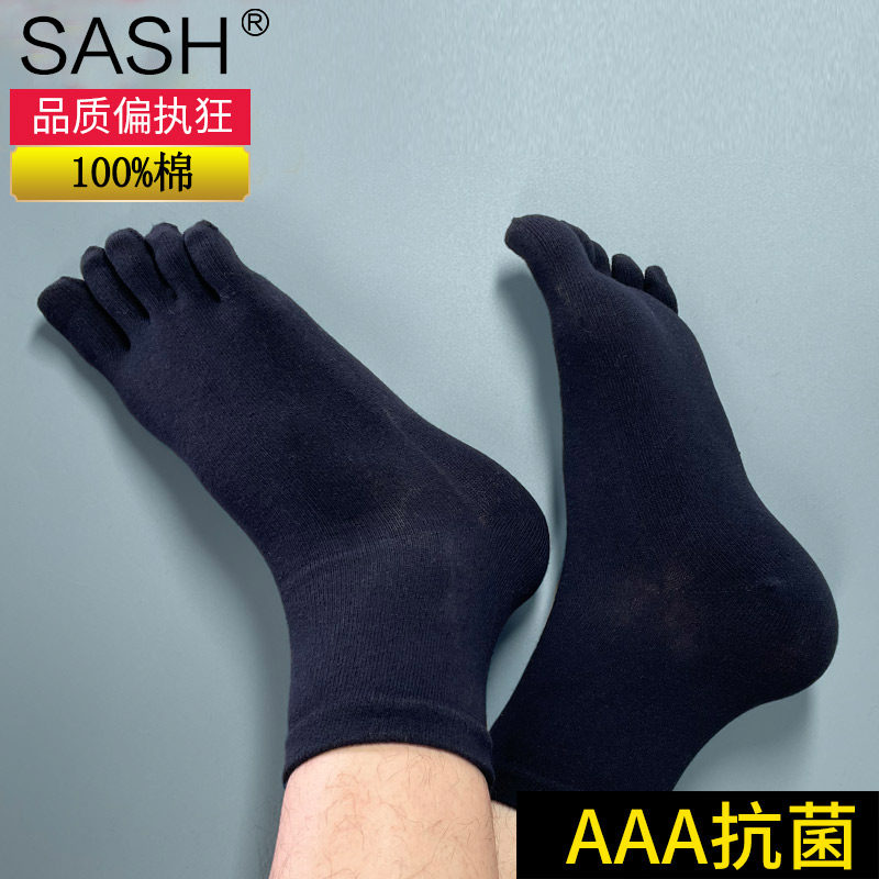 纯棉防臭四季 中厚袜子抗菌全棉男袜分脚趾袜 飒爽五指袜男士 SASH