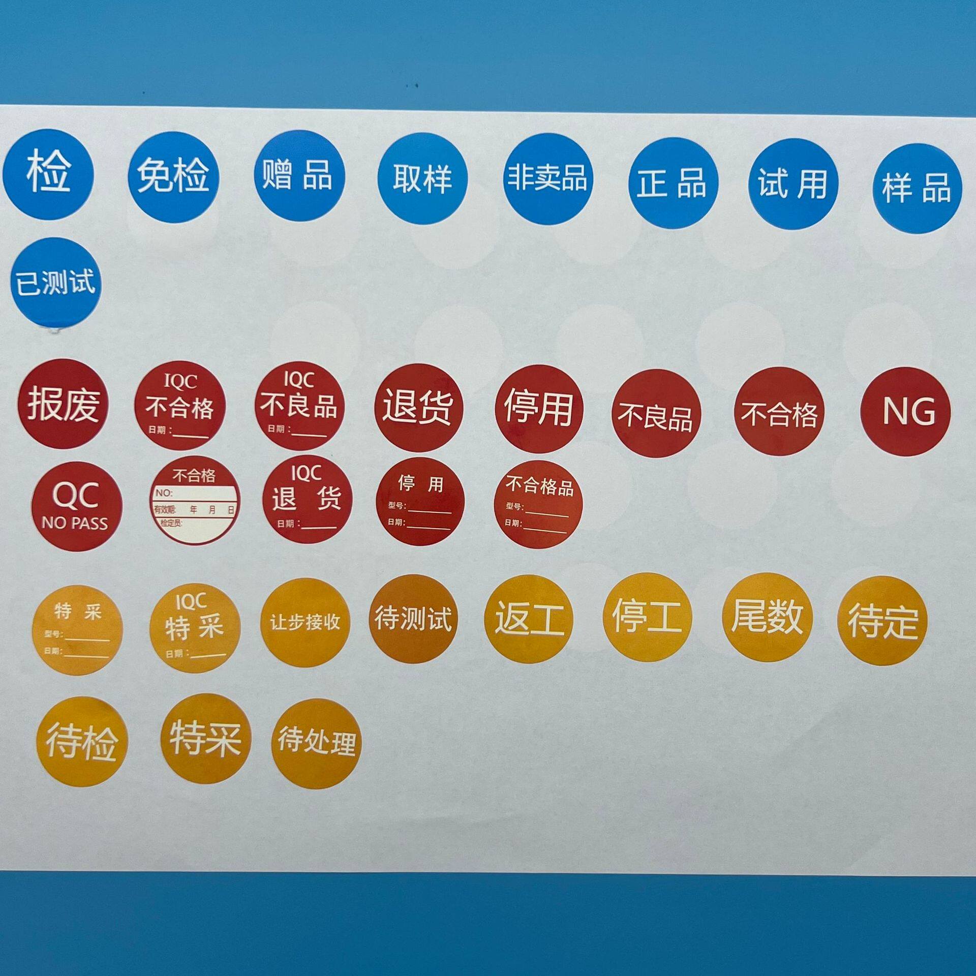 为您提供商品检合格不良品退货iQC特采停用QCPASS取样返工ROHS不干胶贴纸 卷装的详细介绍,