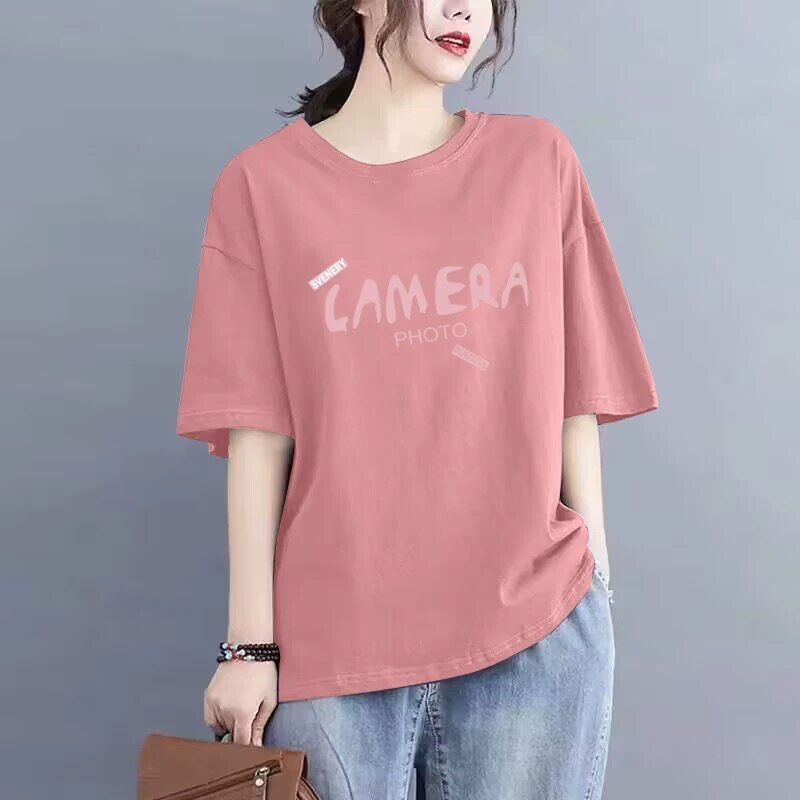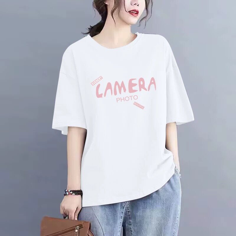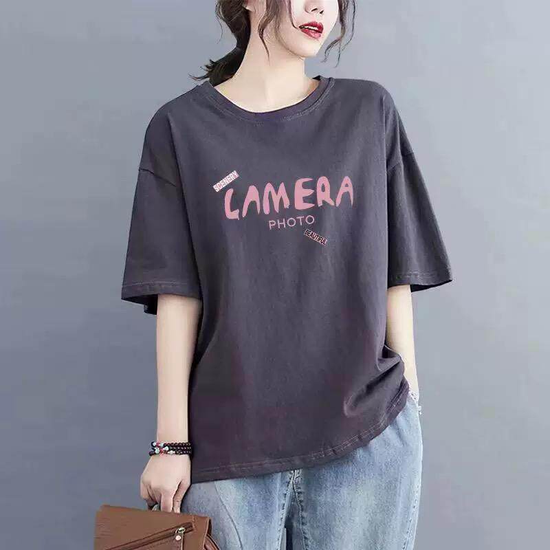内搭打底衫 棉棉印象 上衣 夏季 t恤女宽松大码 美式 印花复古短袖