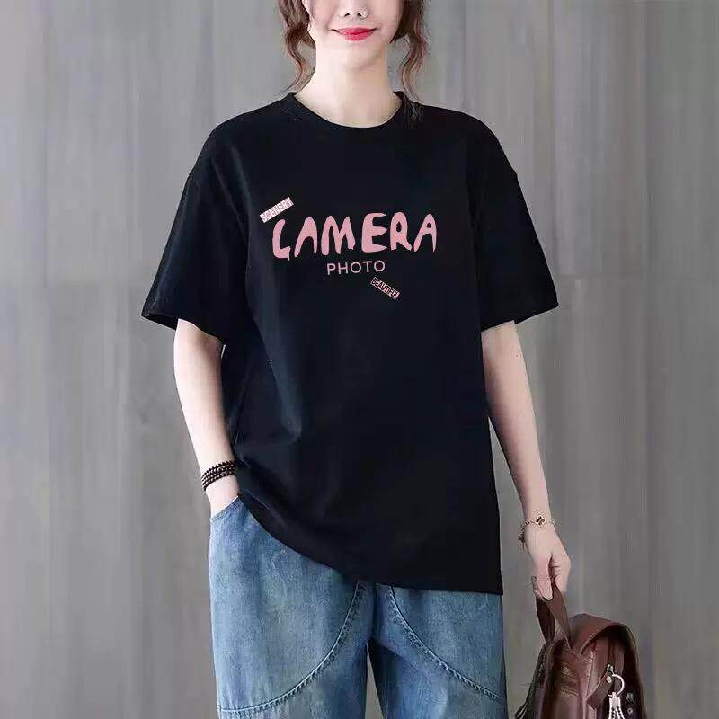 外贸女装 t恤女夏新款 大码 宽松遮肉字母印花胖mm全棉上衣 纯棉短袖由