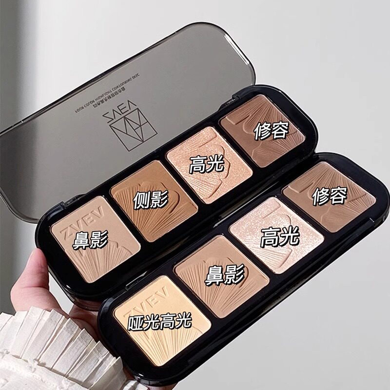 四色修容高光一体盘阴影鼻影脸部立体哑光提亮 轻松get原生骨相感由