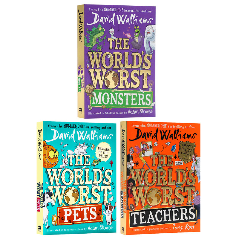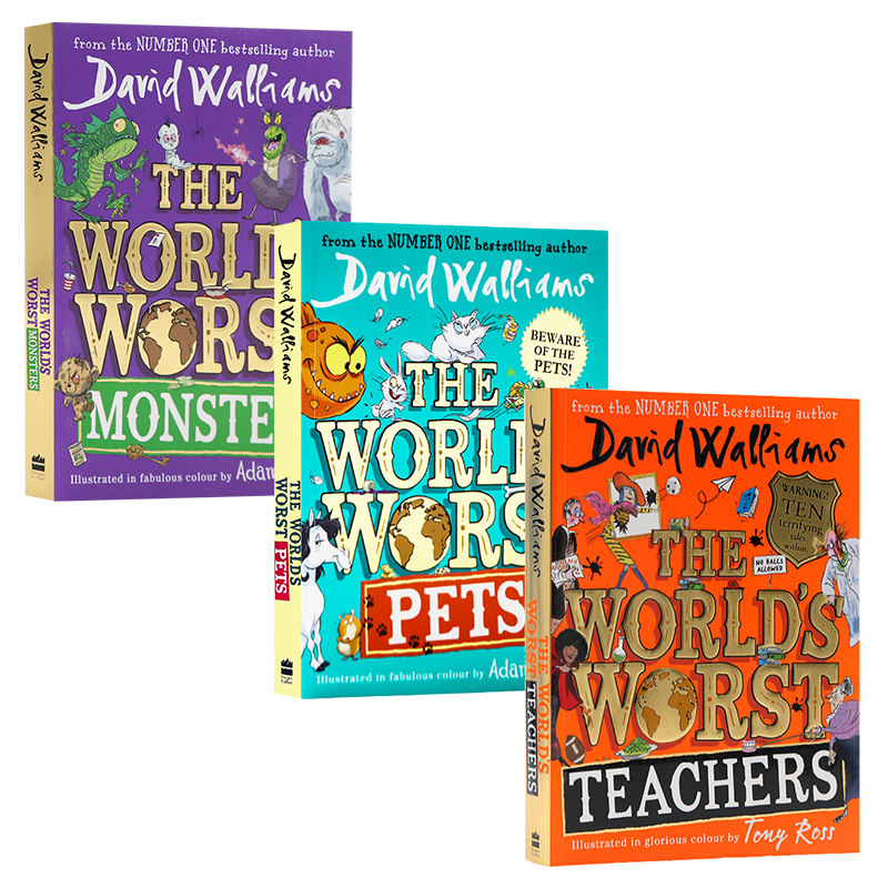大卫威廉姆斯彩绘版 小说 3册英文原版 Worst The Teachers World’S 儿童幽默彩绘版 Walliams 课外阅读书籍David Pets由