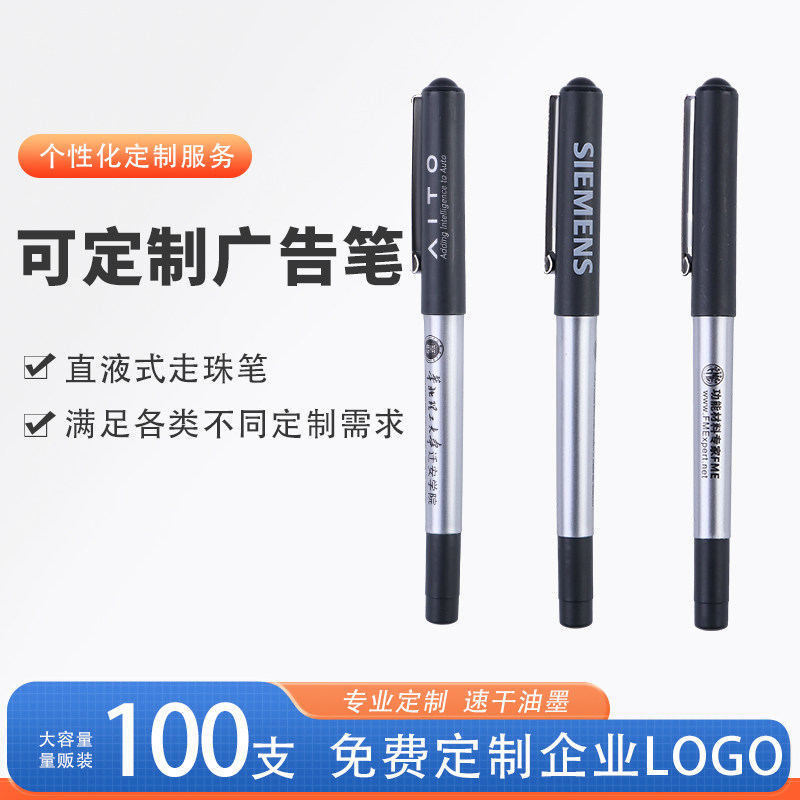 100支定制定做广告笔直液式 中性笔定制企业logo中性笔办公签字笔 黑色笔S658 免定制费由