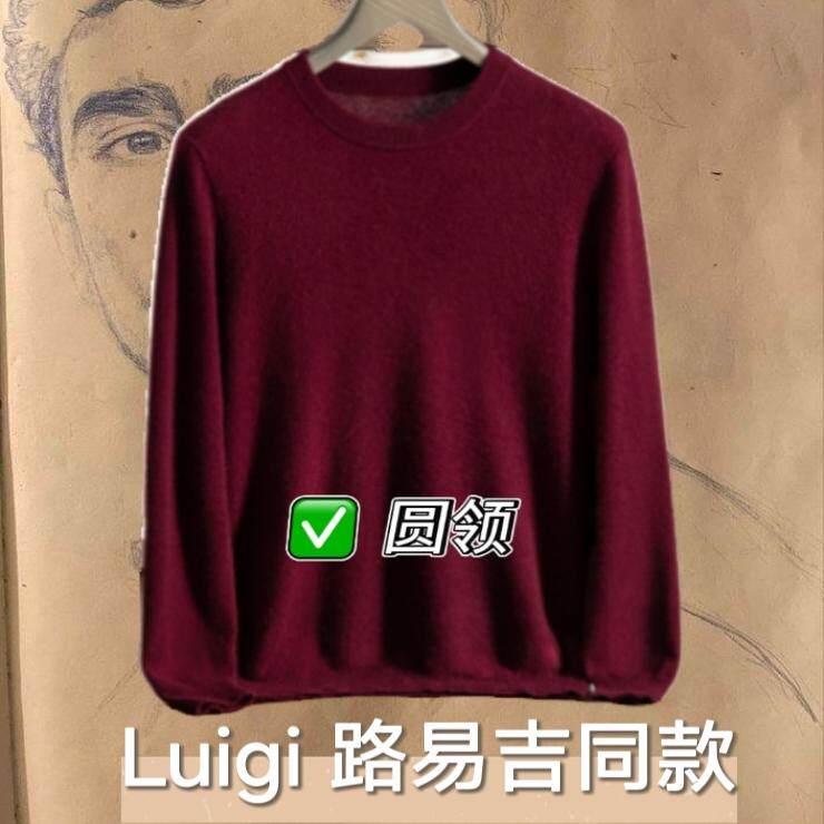 为您提供商品Luigi路易吉同款 男安哥拉红圆领毛衣高端休闲内搭针织学院羊绒衫的详细介绍,
