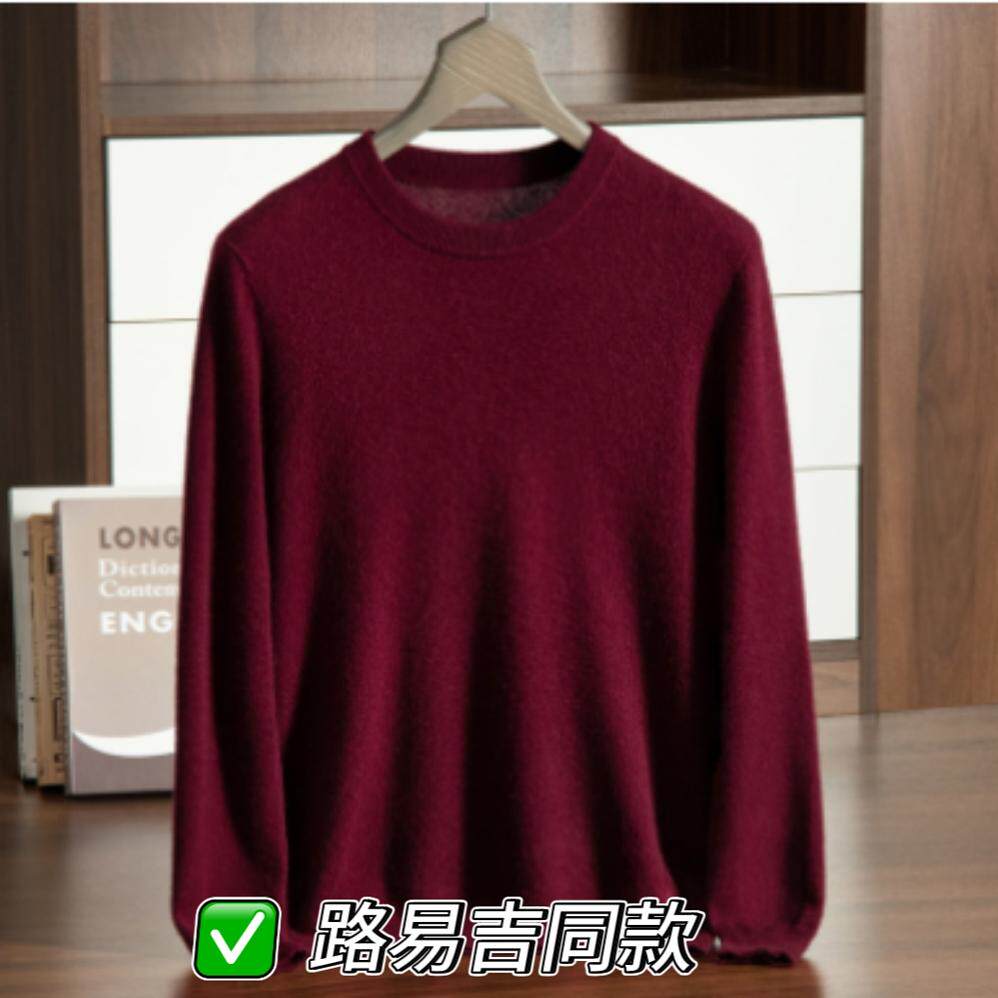 Luigi路易吉同款 男安哥拉红圆领毛衣高端休闲内搭针织学院羊绒衫由