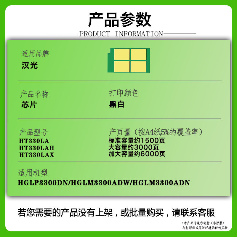 为您提供商品兼容汉光HT330LA芯片TN330粉盒芯片HGLP3300DN硒鼓HGLM3300ADN的详细介绍,