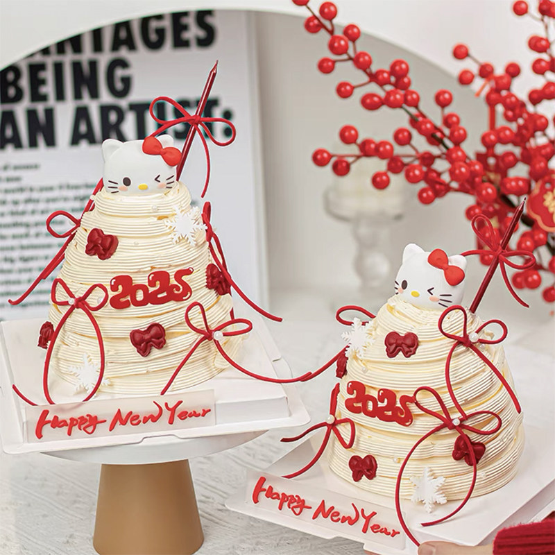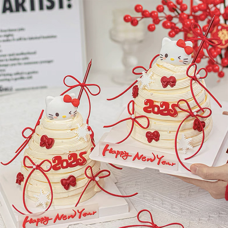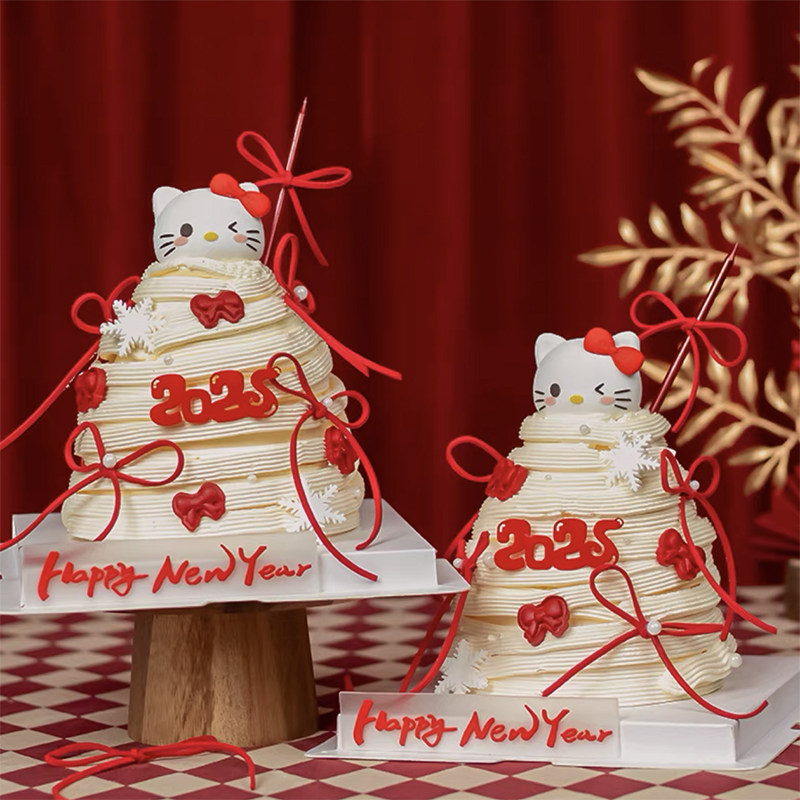 饰摆件kt猫蝴蝶结雪花烘焙插件 2025新年跨年春节网红许愿树蛋糕装由