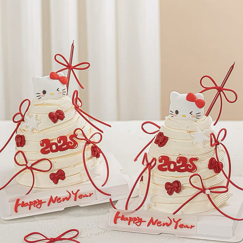 饰摆件kt猫蝴蝶结雪花烘焙插件 2025新年跨年春节网红许愿树蛋糕装