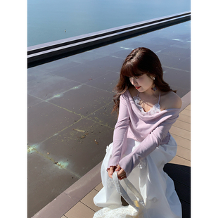 紫色圆领上衣女 MosesQueen魔西女王显身材掐腰正肩T恤女2025夏季