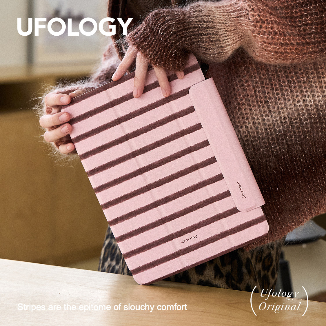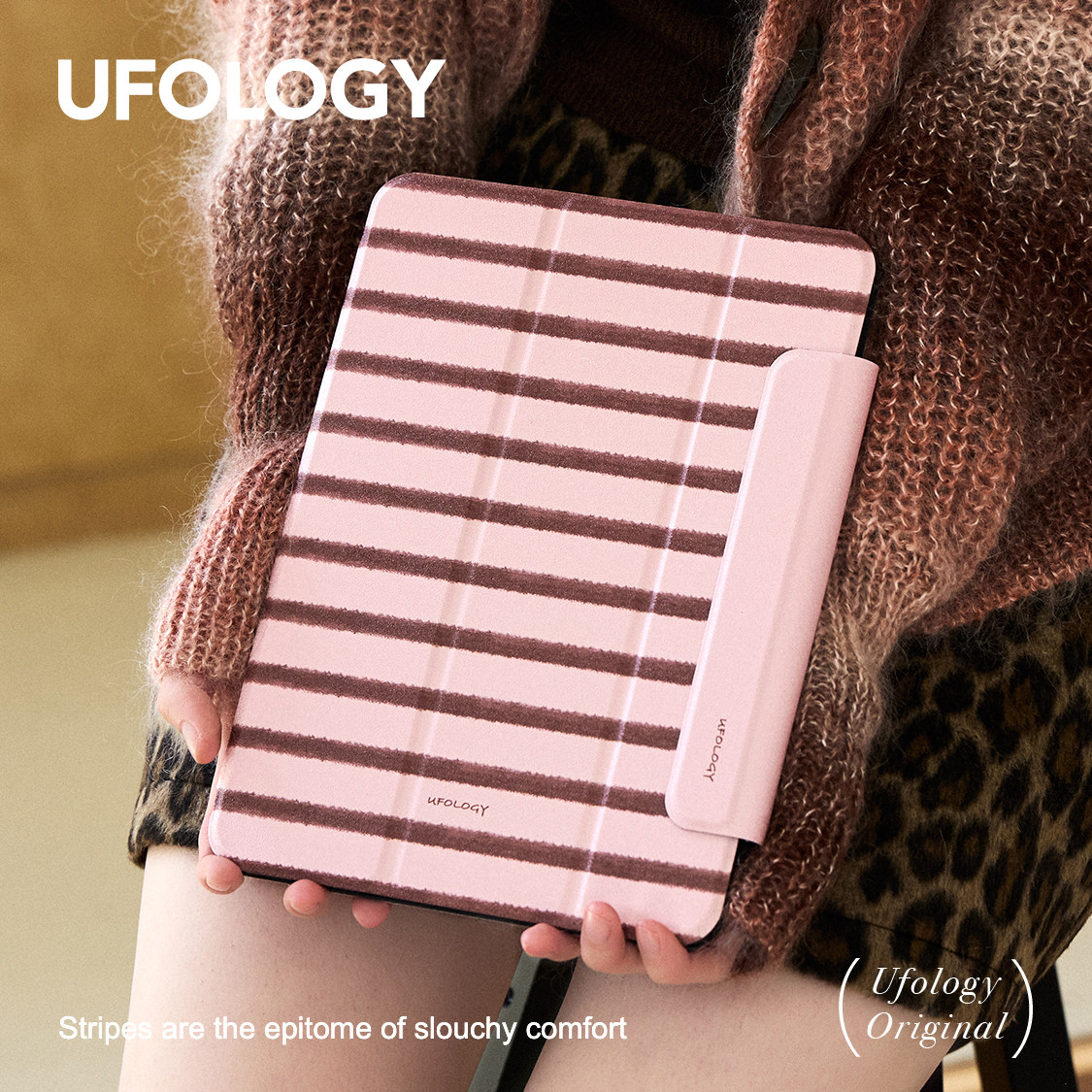 为您提供商品Ufology原创粉棕条纹适用ipadair6保护壳pro11寸平板mini6保护套air4 10代 5磁吸全包air3笔槽13寸苹果7的详细介绍,