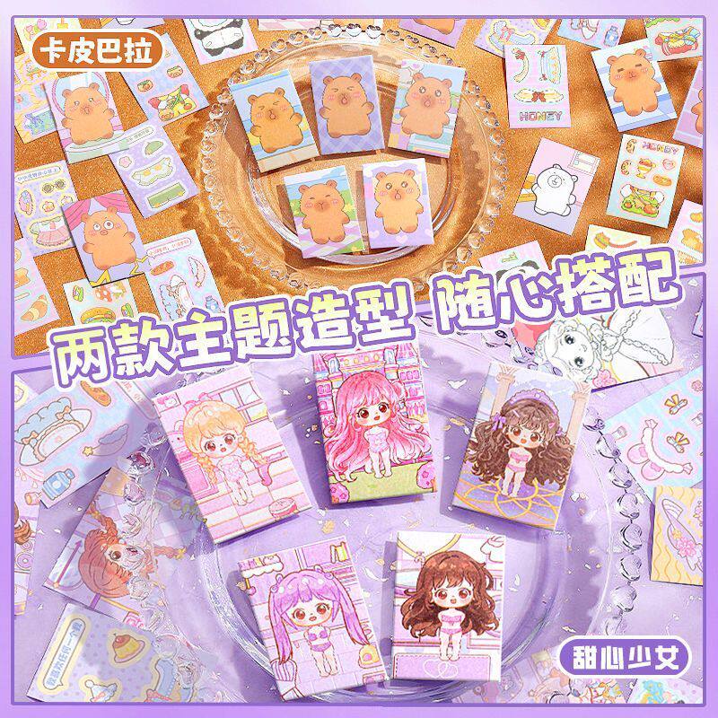 豆豆本摸鱼随身便携口袋本小本子可爱贴纸高颜值趣味解压卡通儿童益智玩具小学生女孩手帐贴纸书礼物 迷你换装