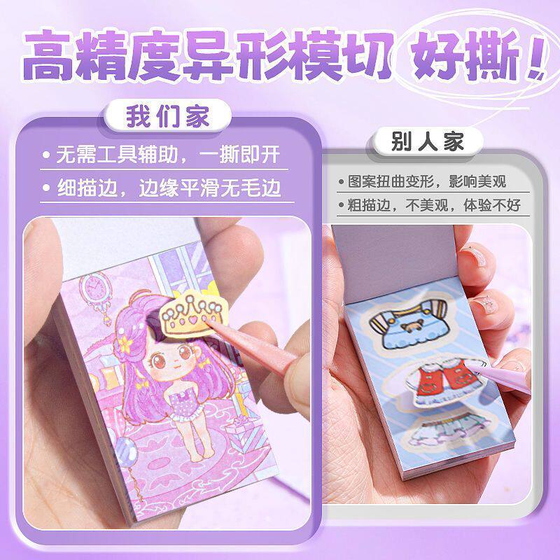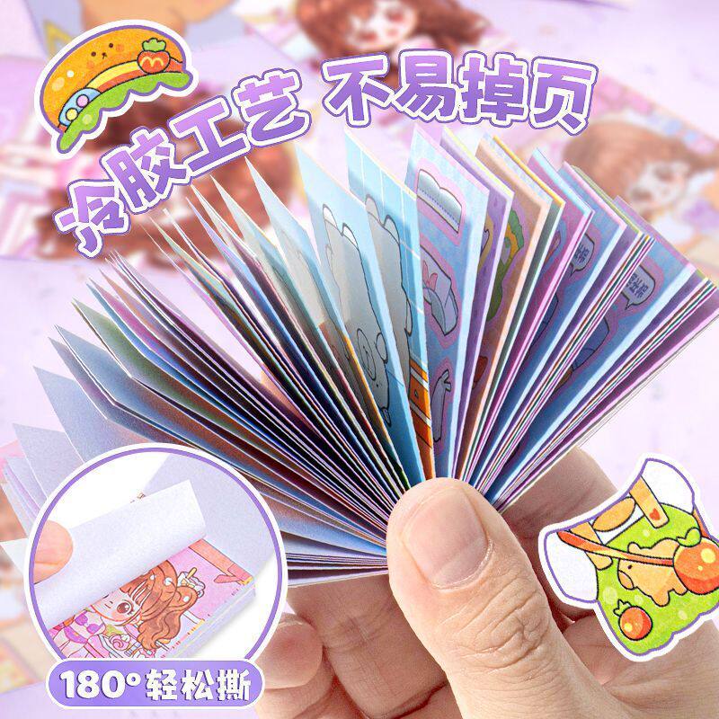 豆豆本摸鱼随身便携口袋本小本子可爱贴纸高颜值趣味解压卡通儿童益智玩具小学生女孩手帐贴纸书礼物 迷你换装由