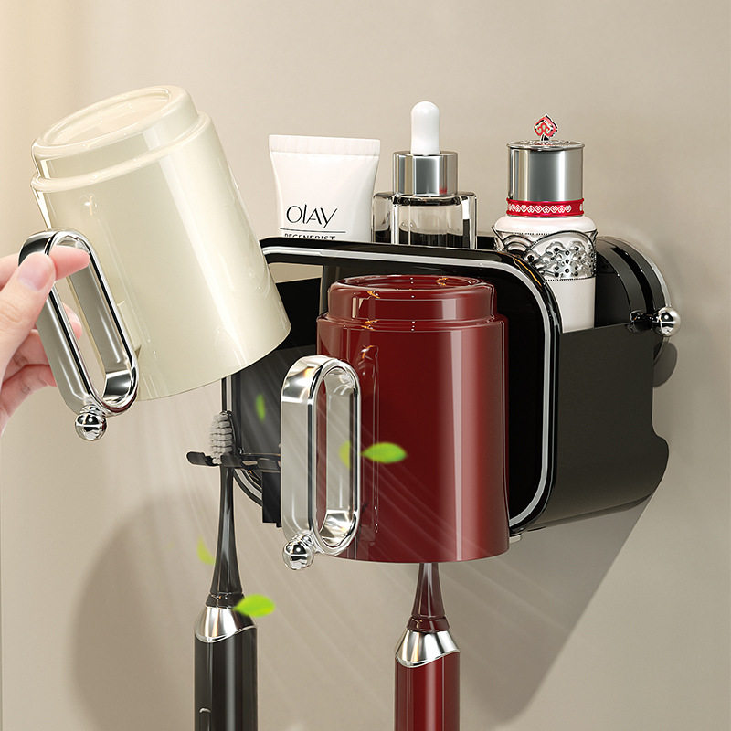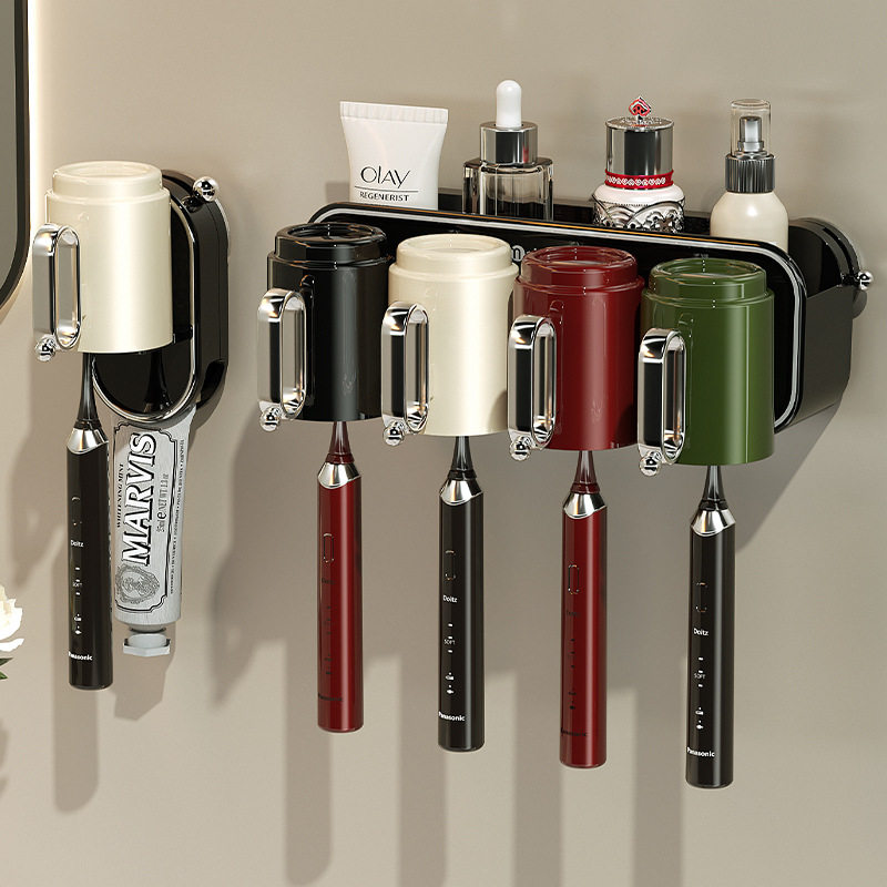 免打孔卫生间牙具座牙膏收纳浴室 牙刷牙杯壁挂置物架电动牙刷套装