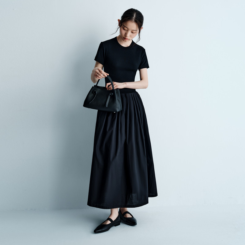 indicia标记25夏新款 L2B5LQ075 黑色简约圆领拼接连衣裙A字长裙