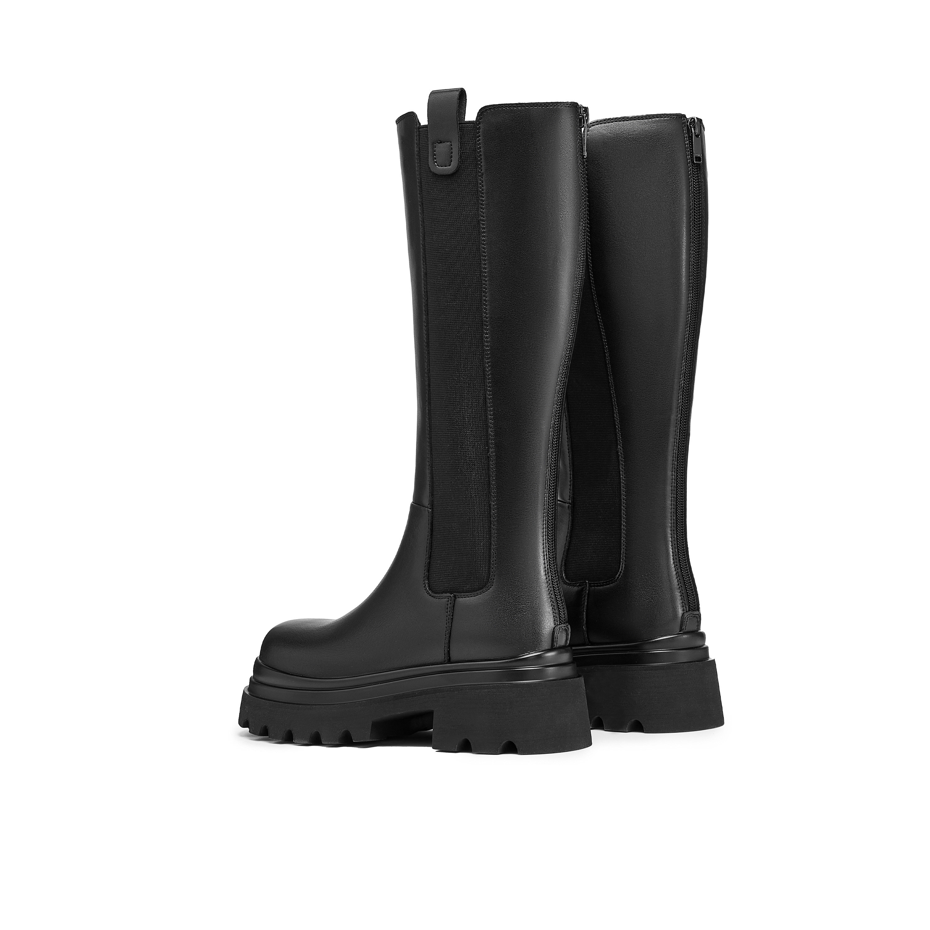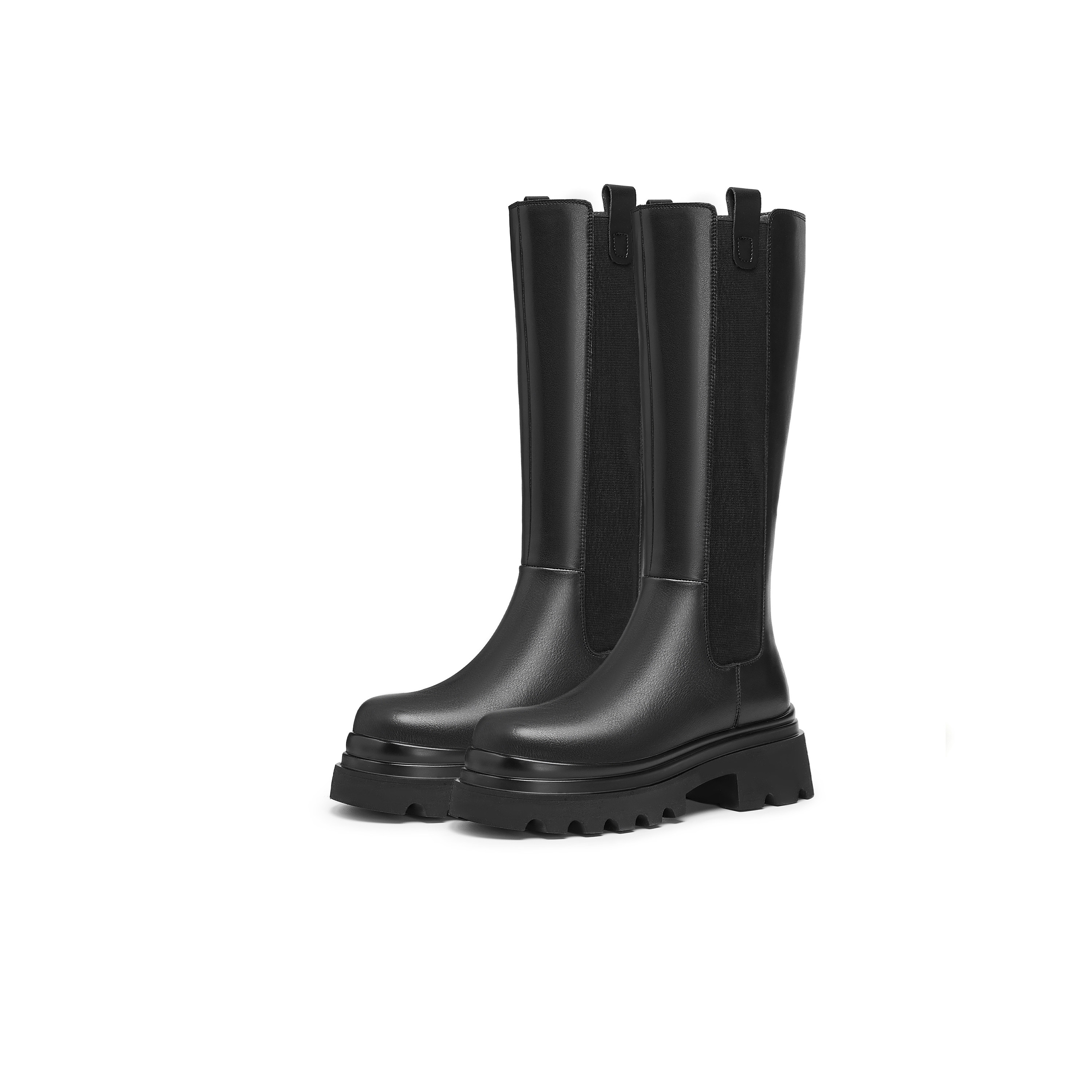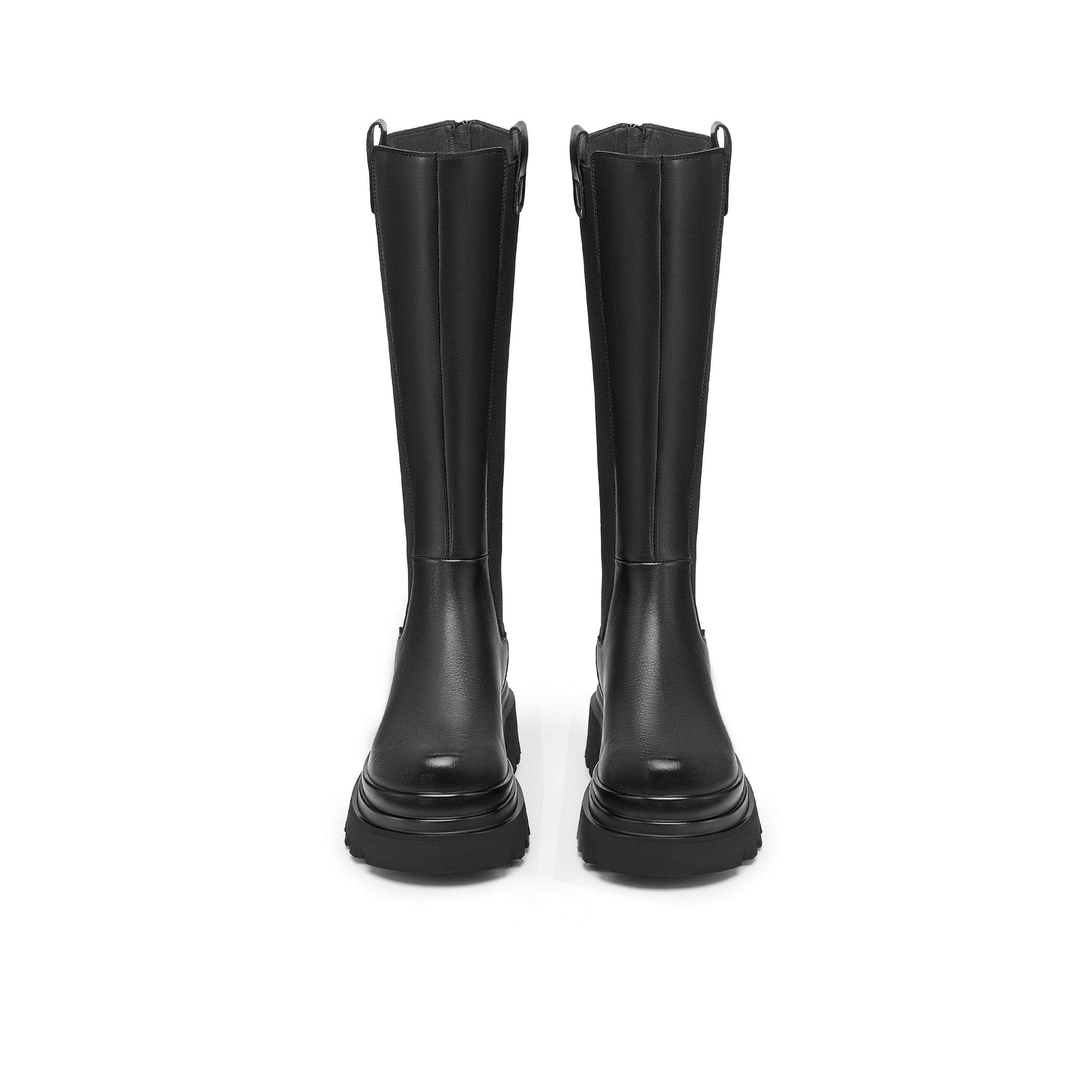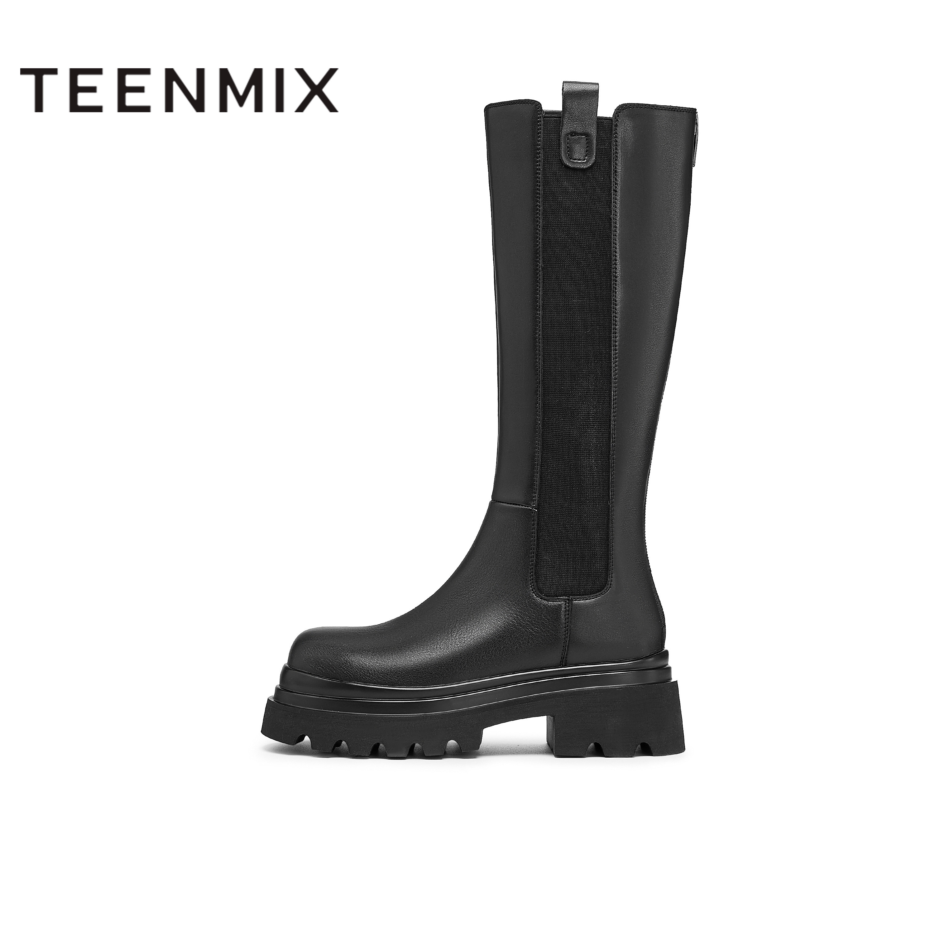 长筒靴长靴厚底百搭机车女切尔西靴KQX11DG4 天美意冬新款