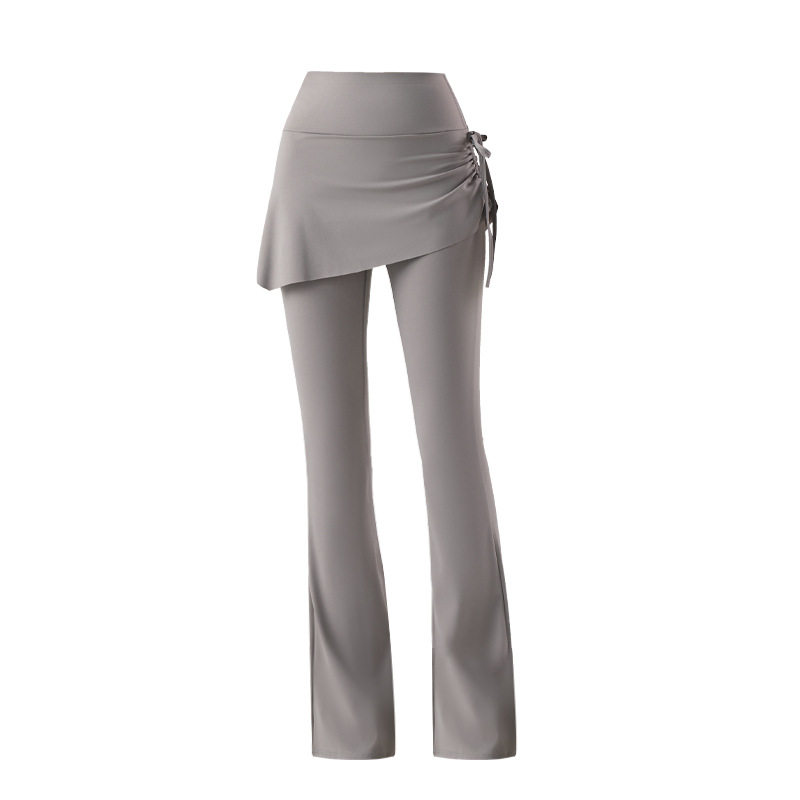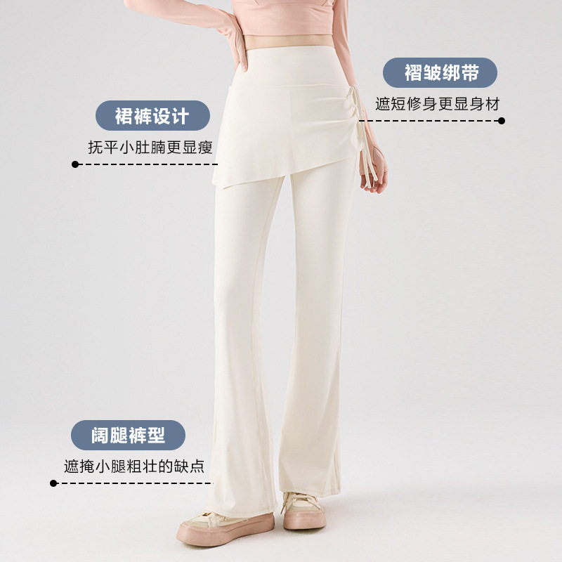 高腰提臀防走光喇叭裤 裙 普拉提运动健身舞蹈瑜伽假两件抽绳褶皱裤
