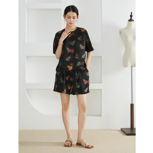 套装 女100%桑蚕丝两件套 短裤 一丝牵葫芦香云纱花萝红云纱真丝短袖由