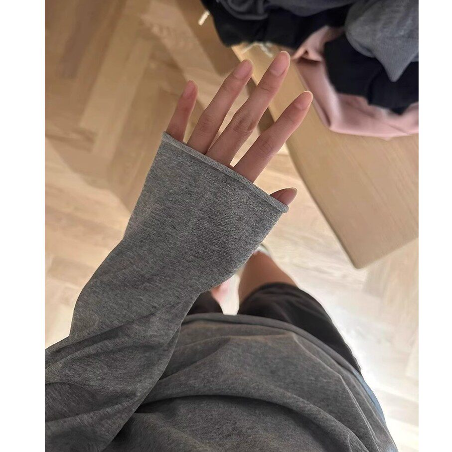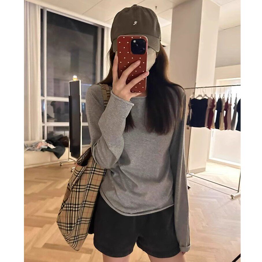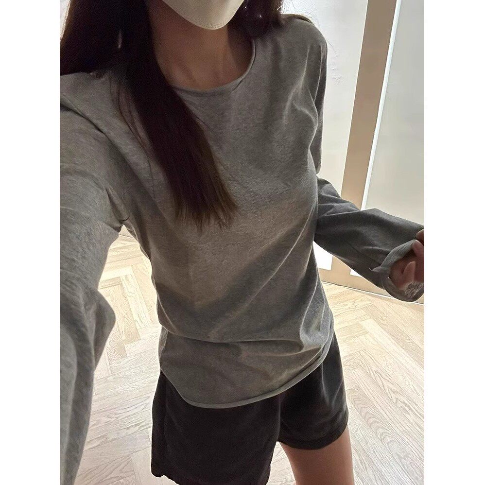 灰色雪花棉简约卷边长袖 内搭打底衫 修身 韩系学生上衣 T恤春夏薄款