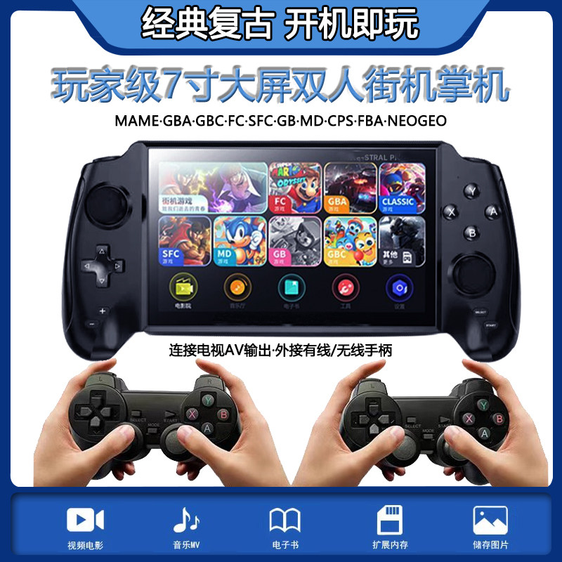 街机双人手柄摇杆电影复古掌机儿童 7寸大屏gba掌上游戏机怀旧经典
