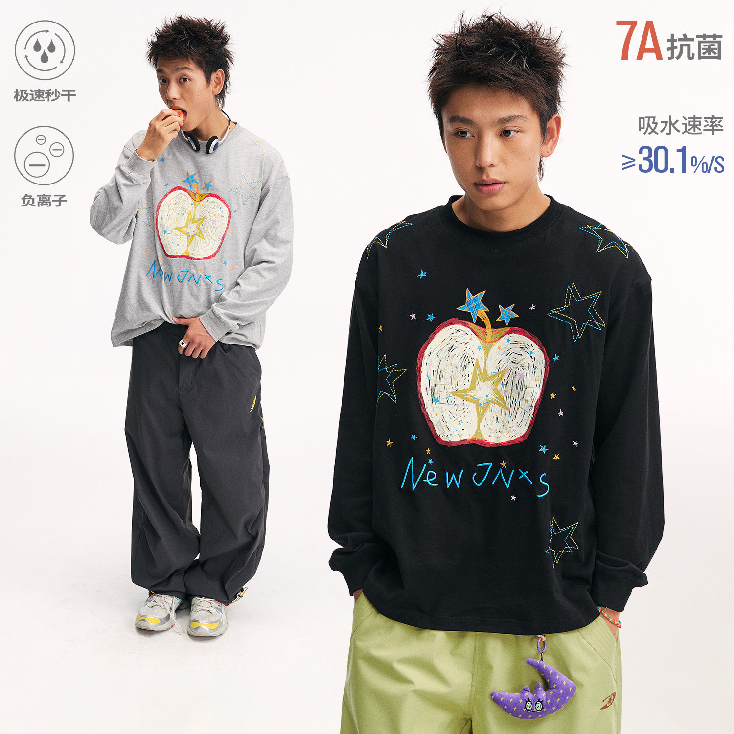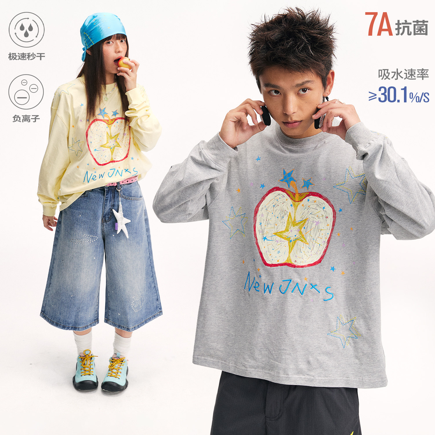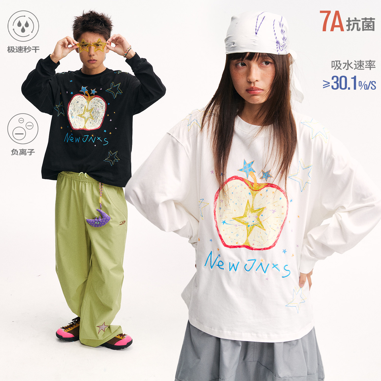T恤男女速干抗菌纯棉宽松休闲上衣春 江南先生NewJNXS苹果刺绣长袖