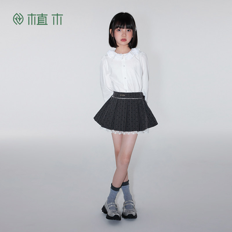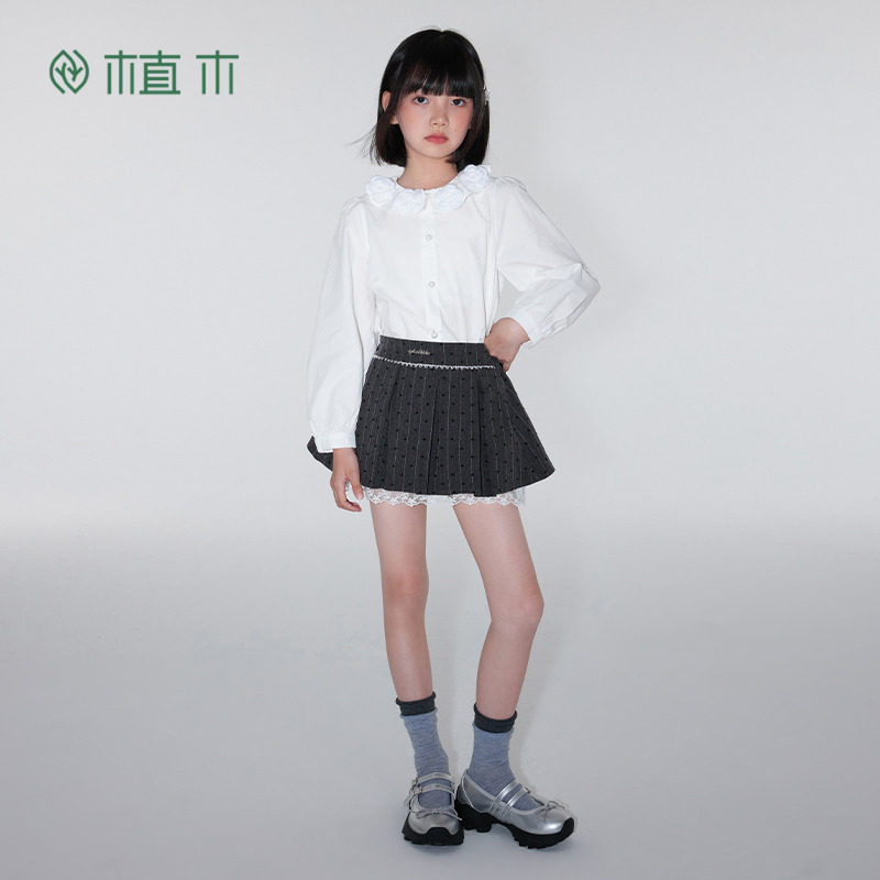 花朵领儿童白衬衫 植木女童衬衫 2026春新款 中大童洋气法式 童装