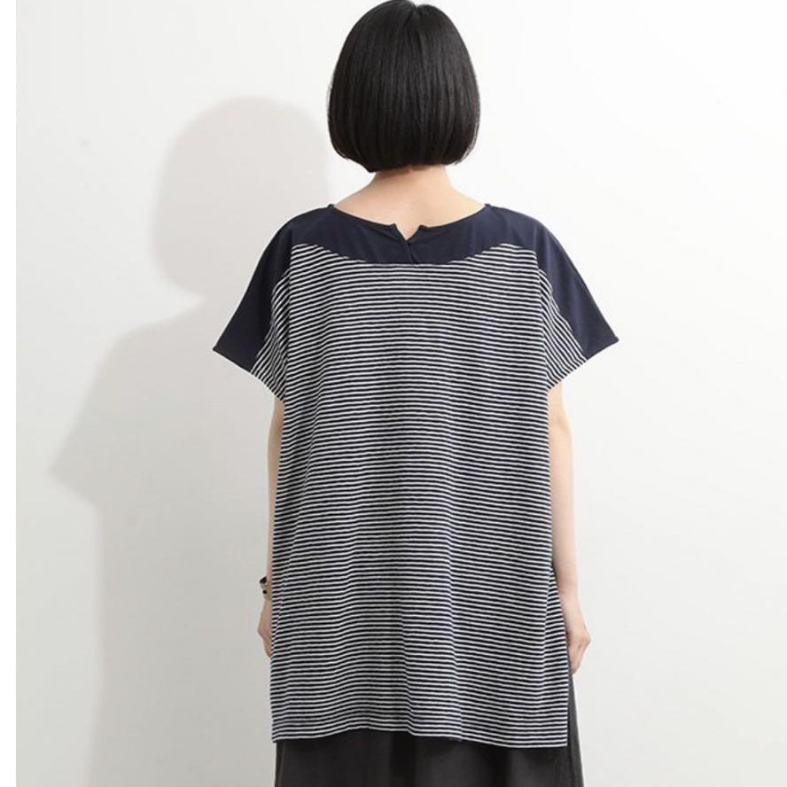 百搭圆领插肩袖 条纹棉T恤29413 清新文艺宽松大版 日单品牌春夏新款