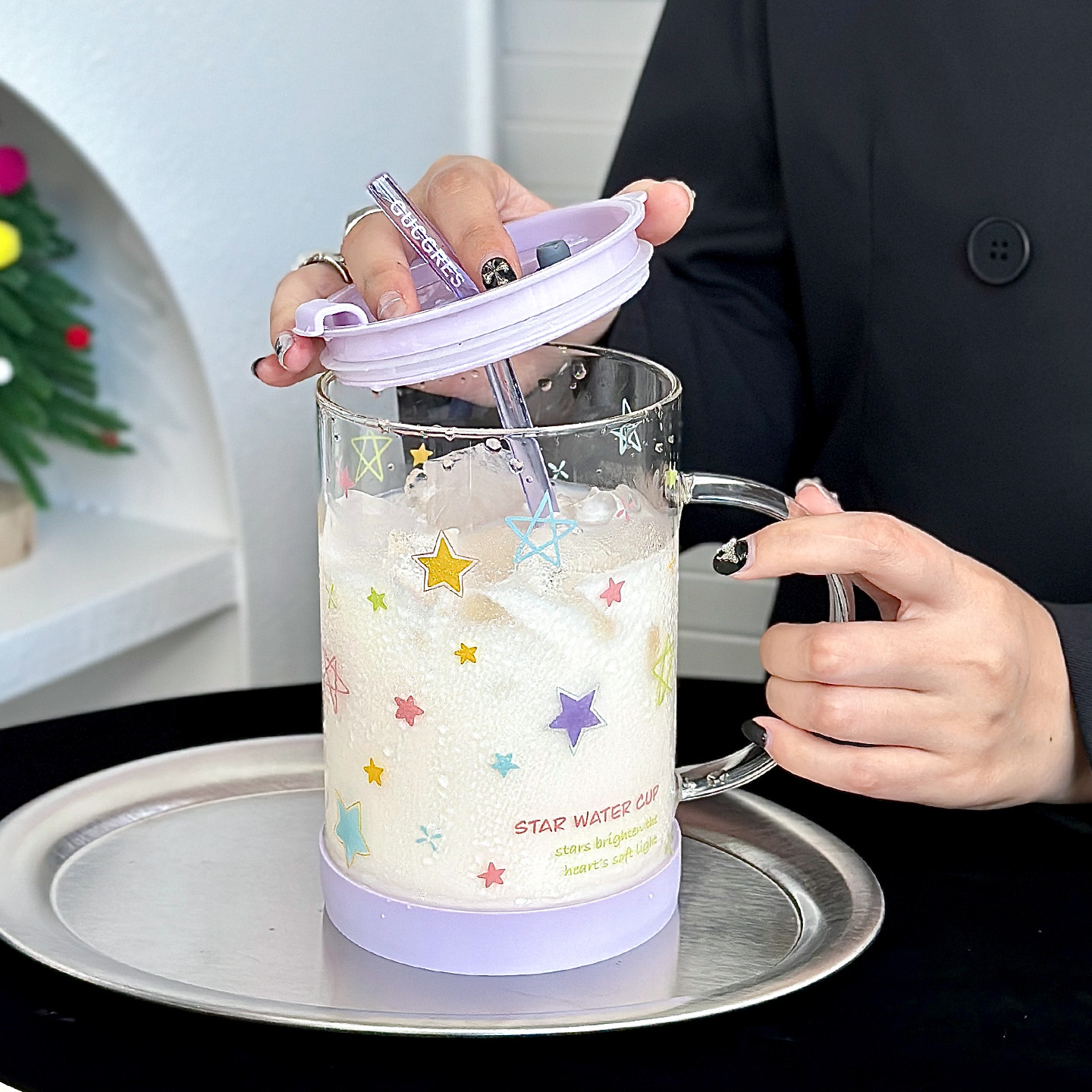 ins玻璃杯牛奶高颜值卡通可爱2025果汁女士咖啡家用喝水饮料杯子
