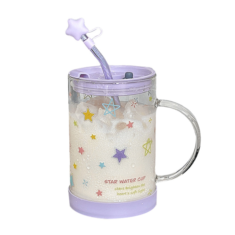 吸管玻璃杯子水杯女高颜值儿童刻度牛奶杯冲奶粉家用带把手喝水杯