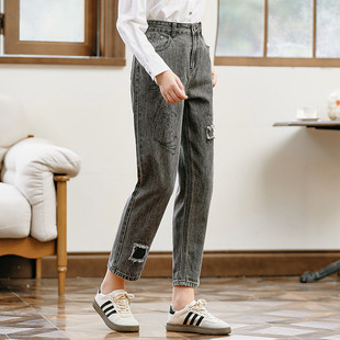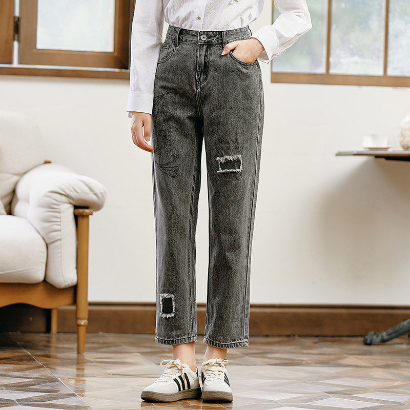 eihey诶嘿低腰修身 长裤 阔腿裤 女 直筒休闲宽松做旧磨白水洗牛仔裤