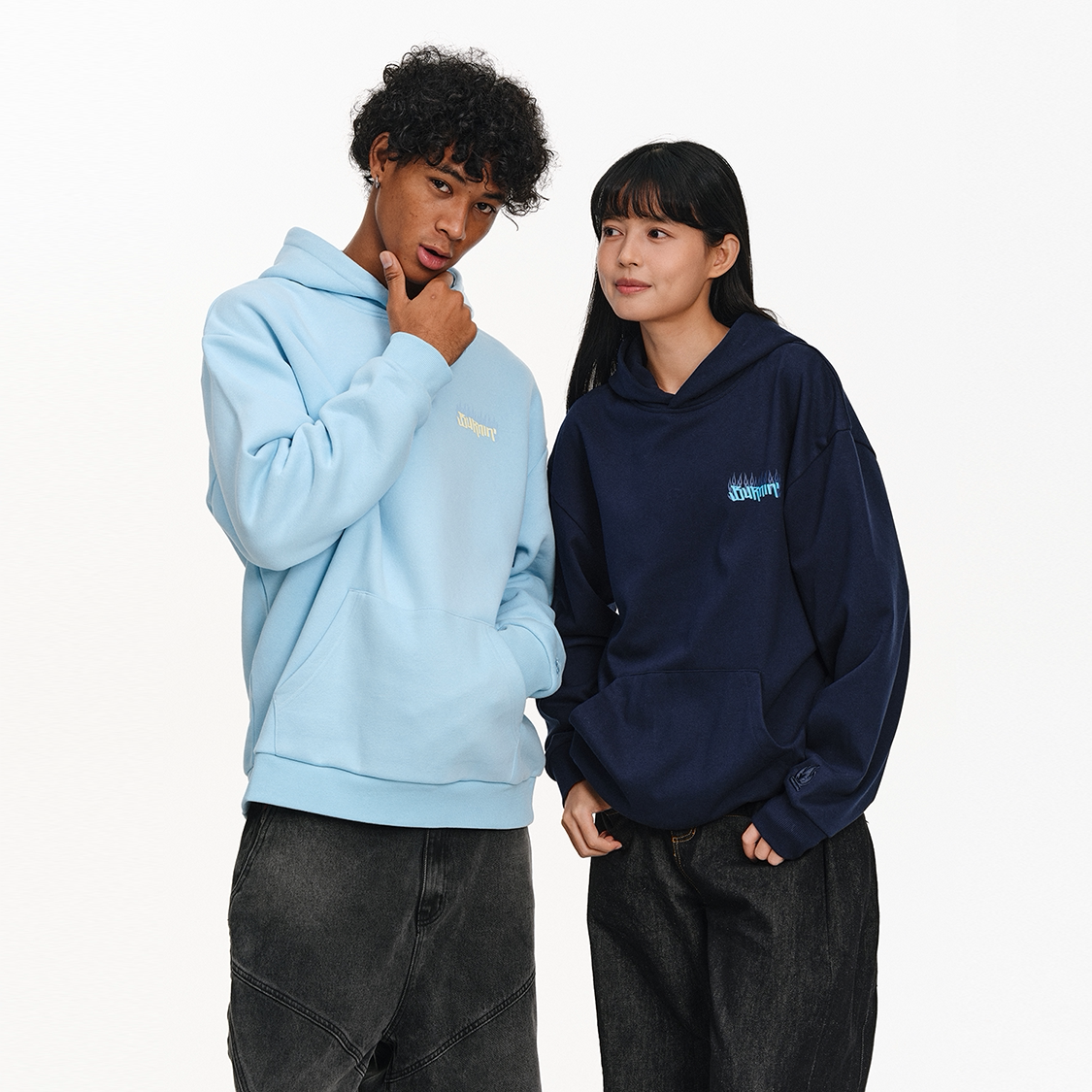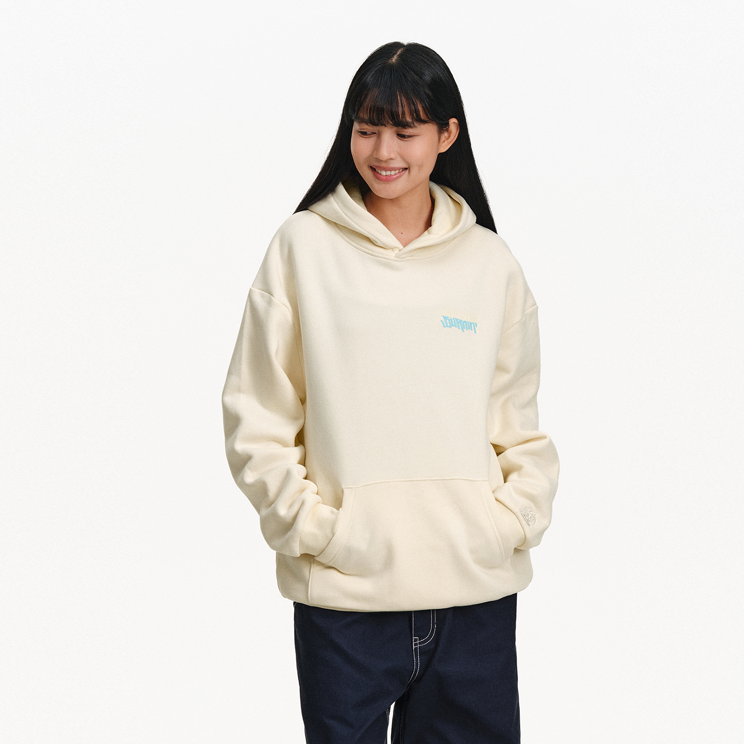 「编织贴布绣连帽卫衣」宽松加绒帽衫 上衣 国潮牌美式 INSstudios